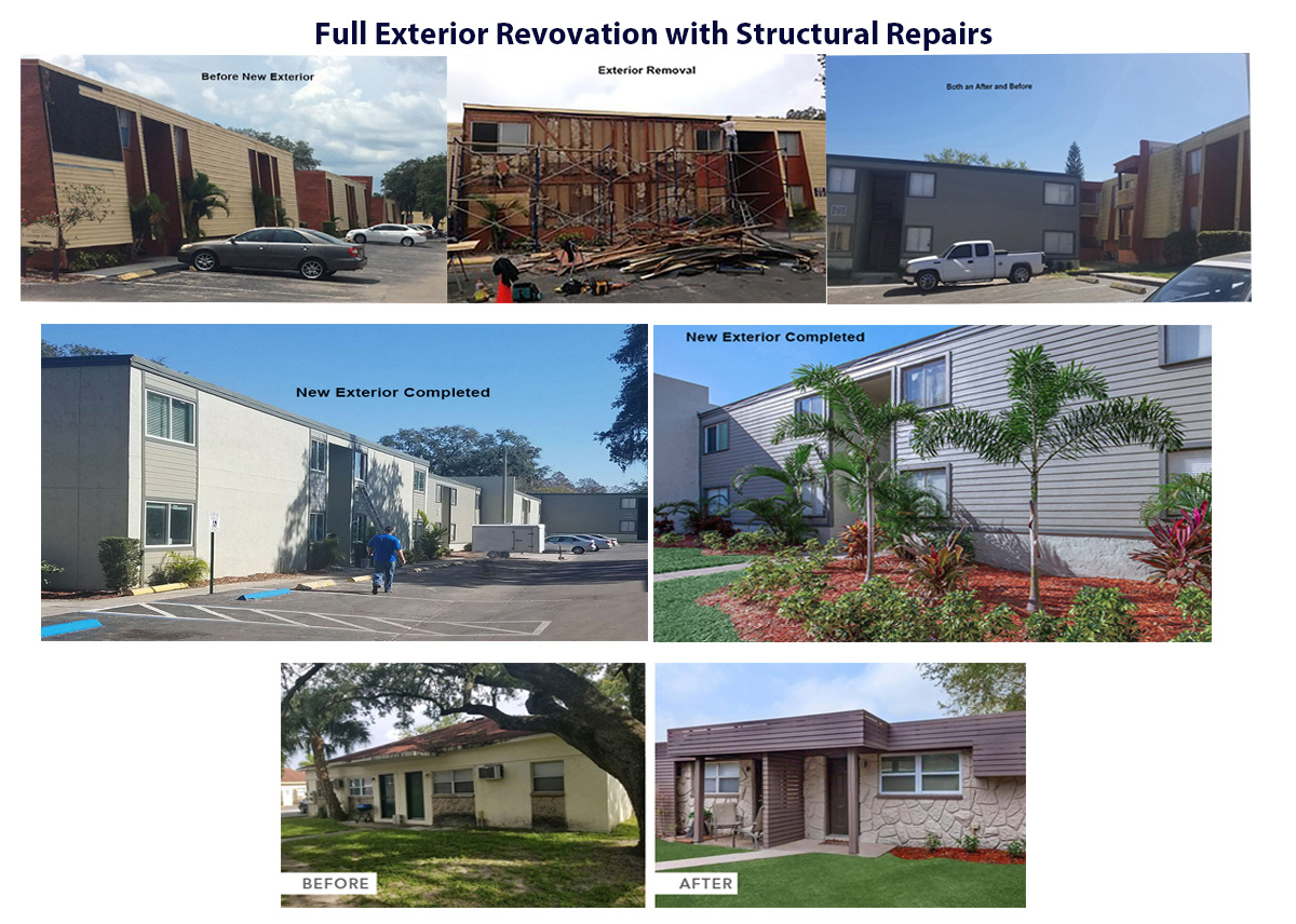 We manage every aspect of exterior renovations, including all types of exterior building siding, windows, roofing, balconies, decking, waterproofing, and site amenities. Our exterior renovation professionals can fix significant grading problems, as well as create new concrete sidewalks, curbs, gutters, drainage, and grading and asphalt repairs.