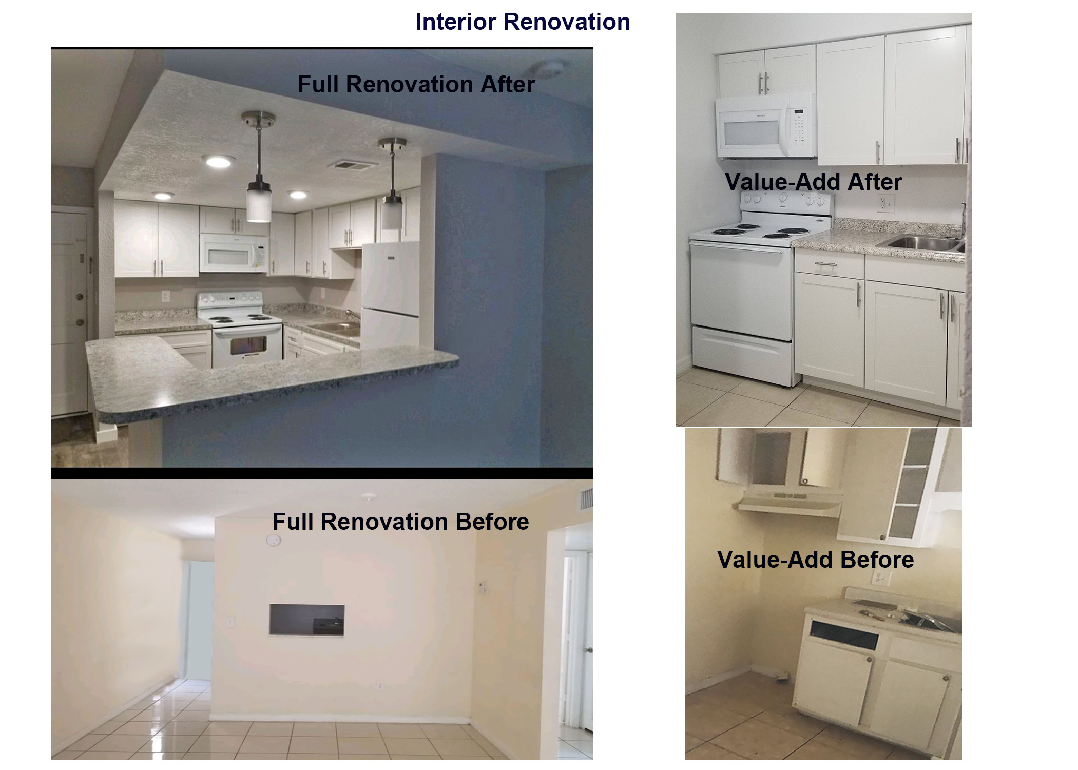 Additionally, we can reconfigure unit layouts, add windows, doors, and laundry hookups. Clients count on us to manage all facets of renovations, including planning, materials, labor management, and quality control.